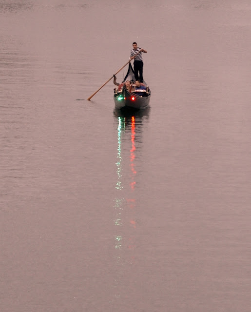 Gondolier Mike Bronstein Was out during that narrow margin of time that is absoulutely perfect for the guests and the gondolier, but not so perfect for a photographer. Nevertheless, I managed to snap a handful of decent shots from atop the Newport Blvd. bridge.